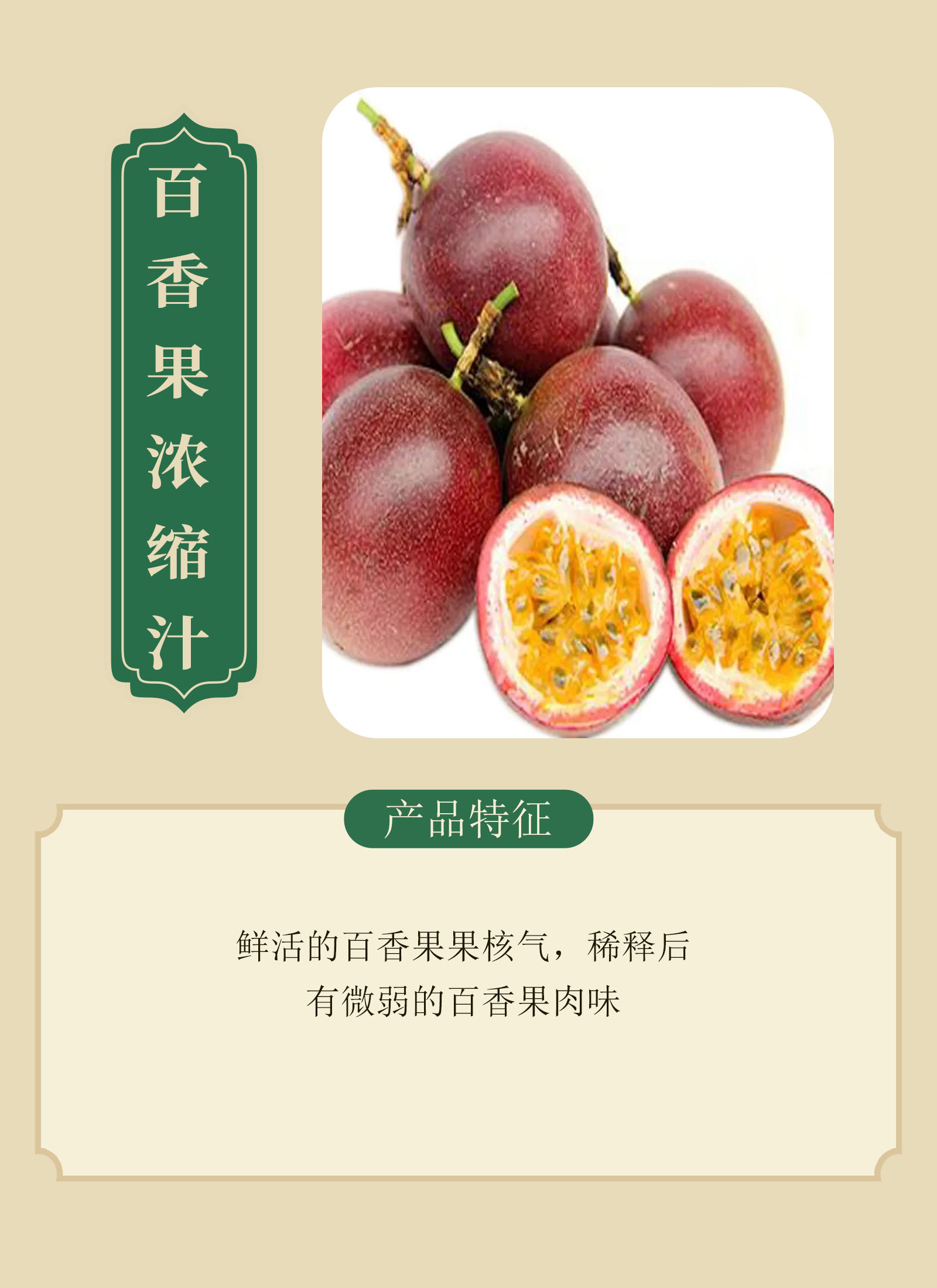 鮮活的百香果果核氣,稀釋后有微弱的百香果肉味