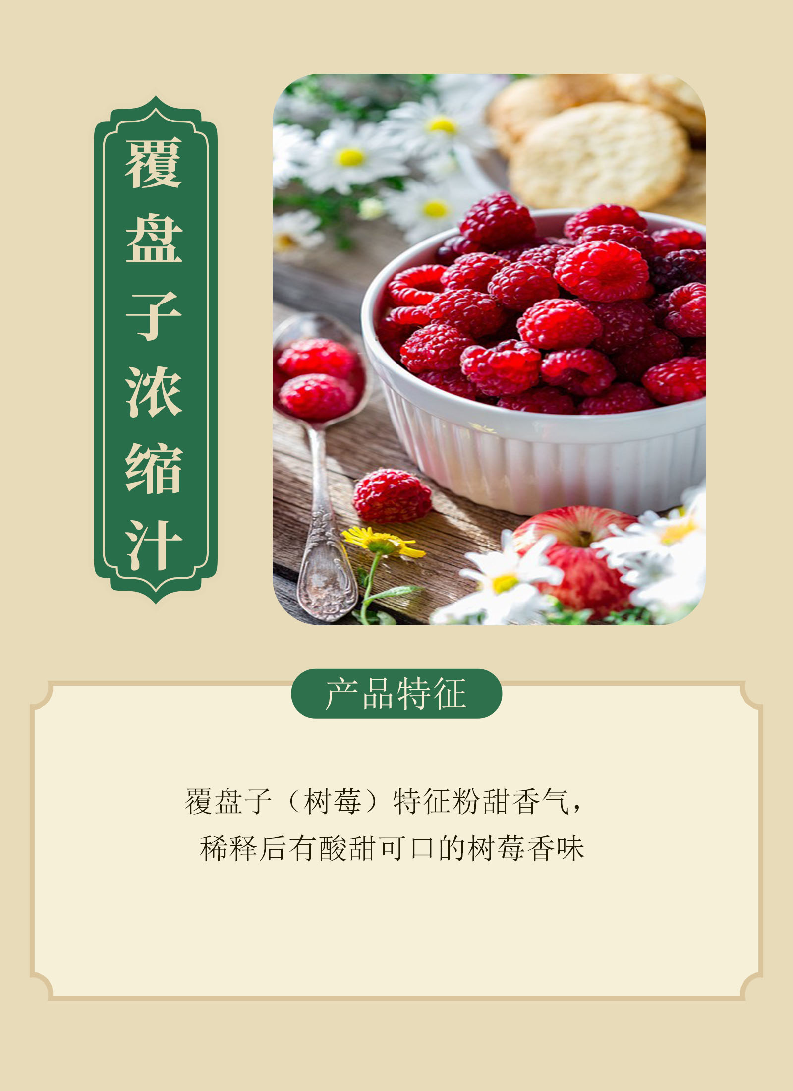 樹莓特征粉甜香氣,稀釋后有酸甜可口的樹莓香味
